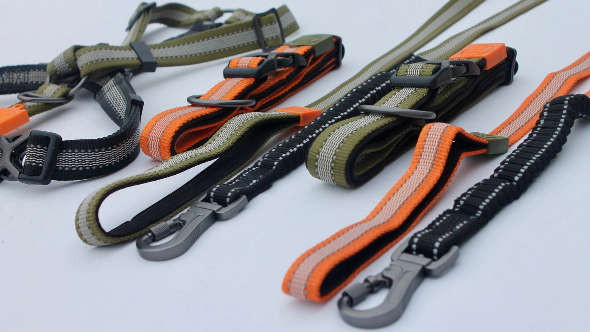 Kit Strong Adventure : Harnais + Collier + Laisse Amortisseur – Vert Olive 🌳